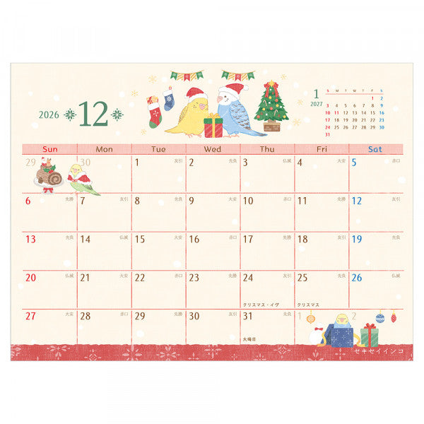 2026 Die Cut Calendar Java Sparrow Mini Size Stand Type
