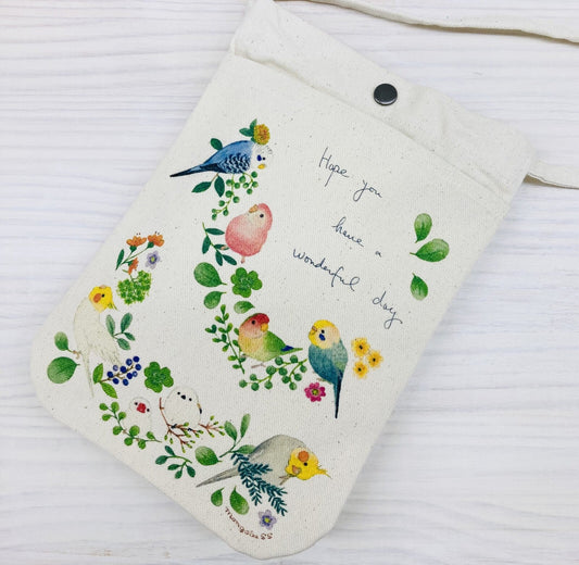 Budgie & Donut Lightweight Cotton Drawstring Tote Bag Eco Bag