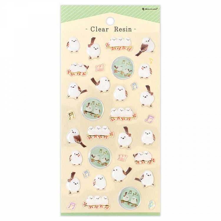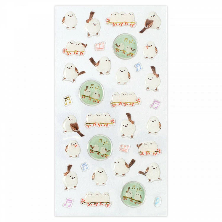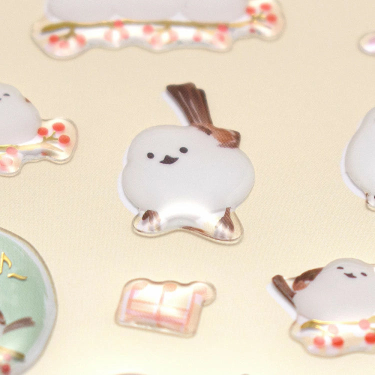 - Long-tailed Tit Epoxy Stickers with Gold Accent