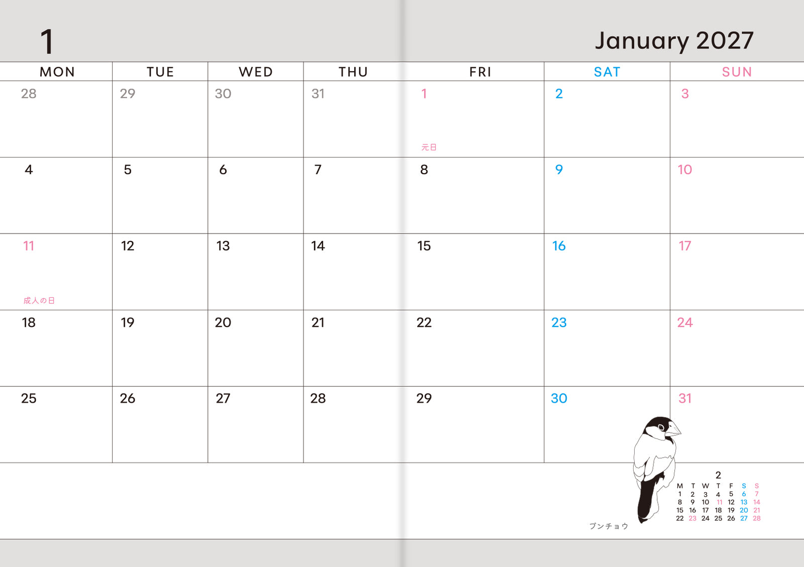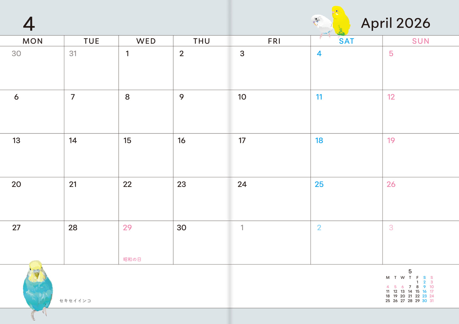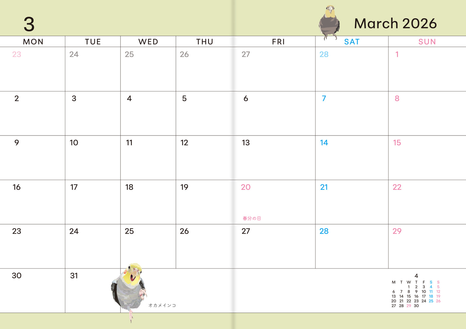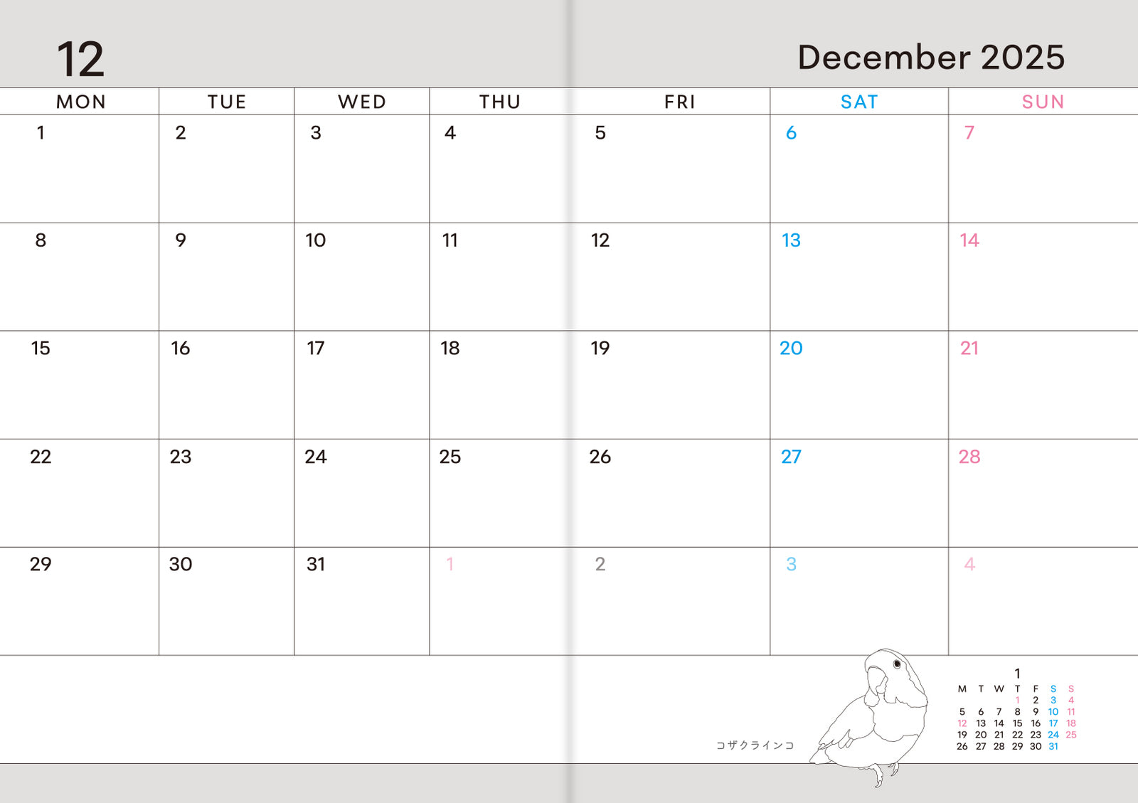 2026 Long-tailed Tit Budgie Java Sparrow Cockatiel Planner Diary Schedule Book A6 size (December 2025 Start)