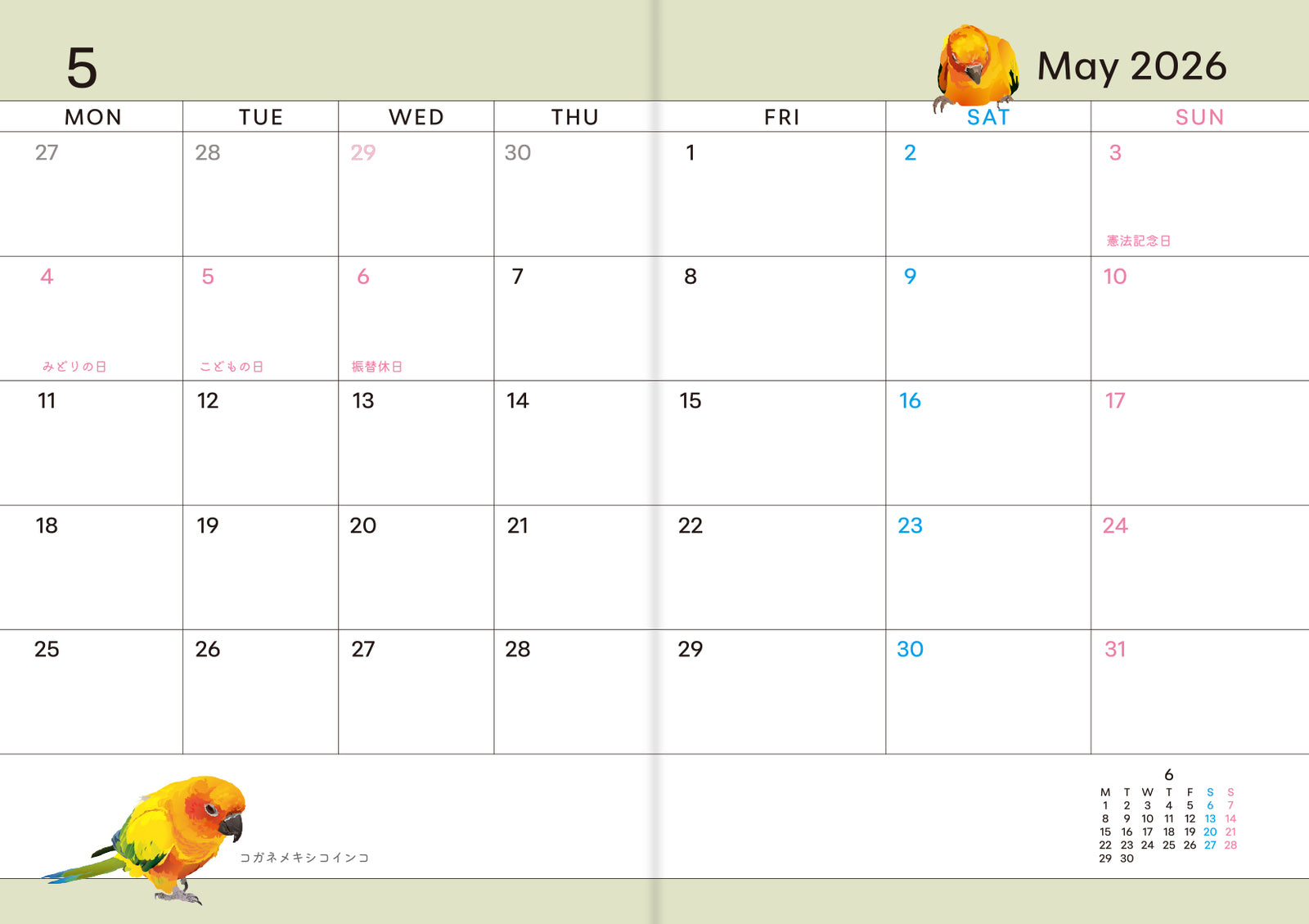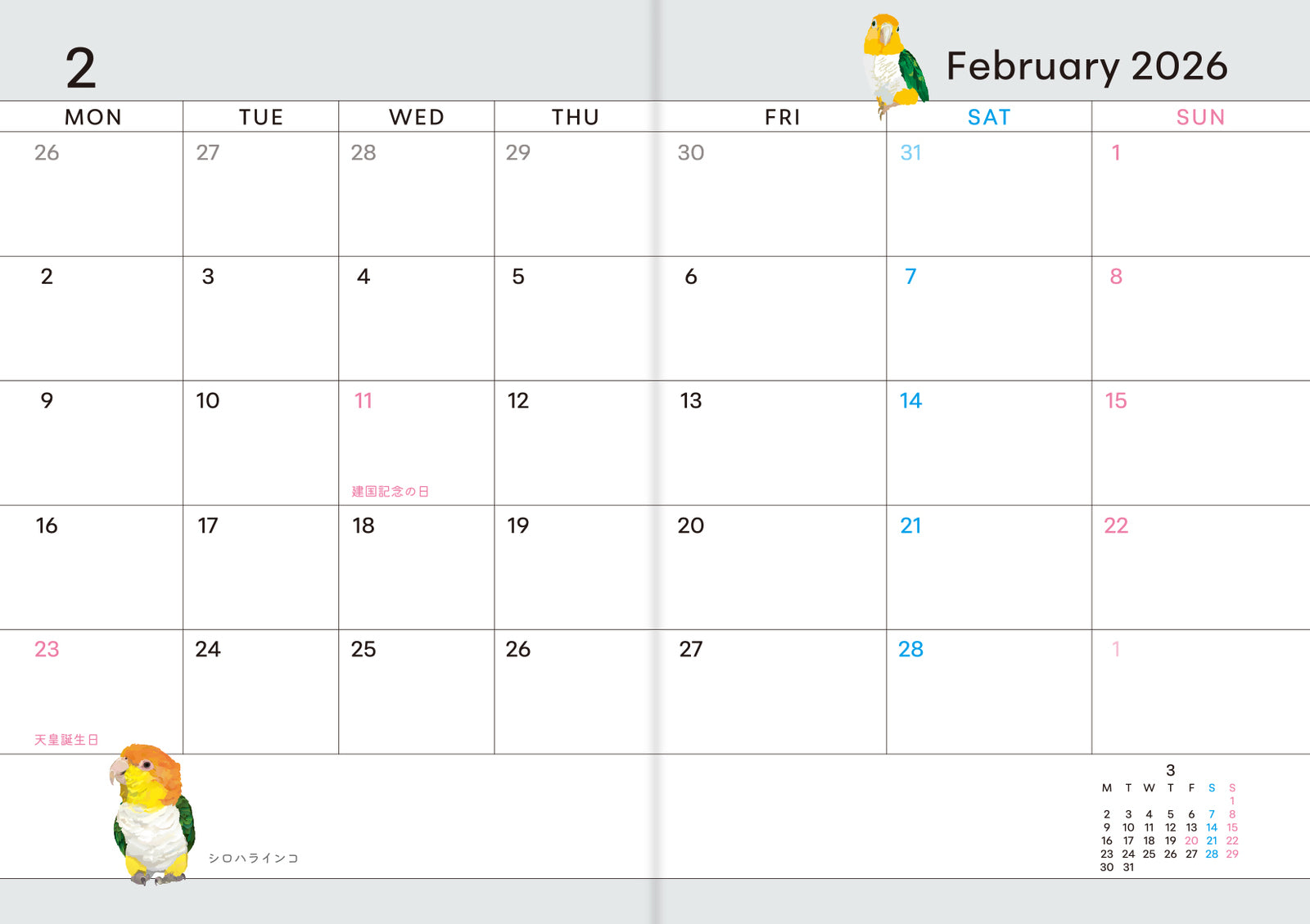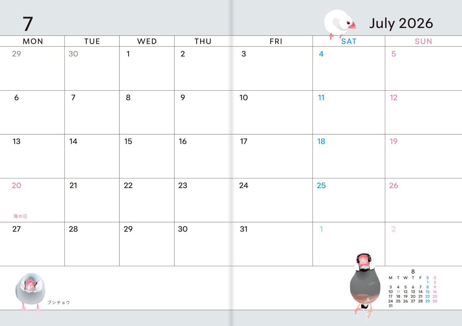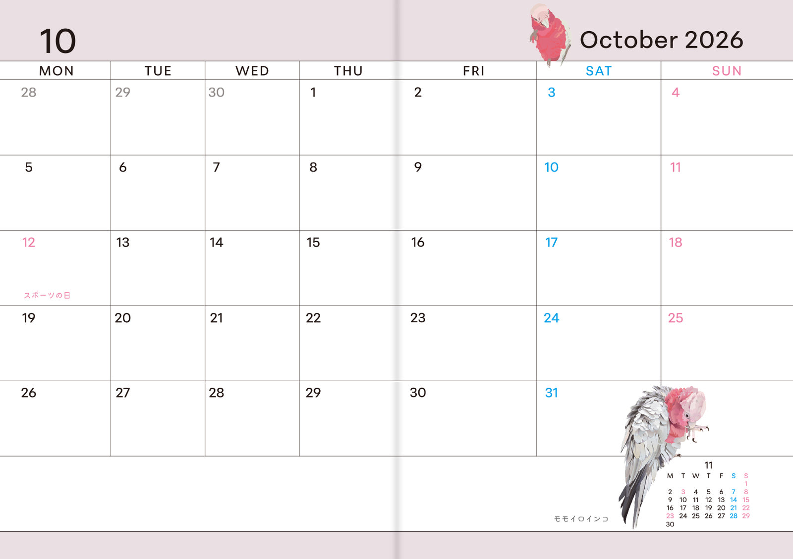 2026 Long-tailed Tit Budgie Java Sparrow Cockatiel Planner Diary Schedule Book A6 size (December 2025 Start)