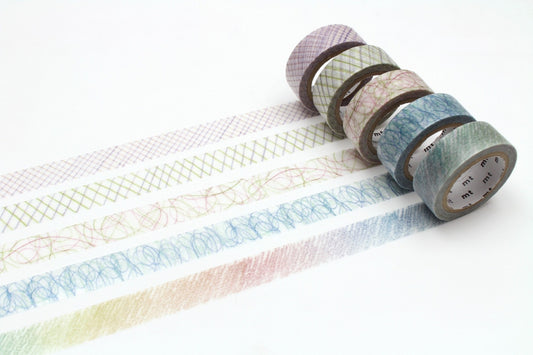 mt Chigihari Colored Pencil Japanese Washi Tape Masking Tape 5 Rolls Set