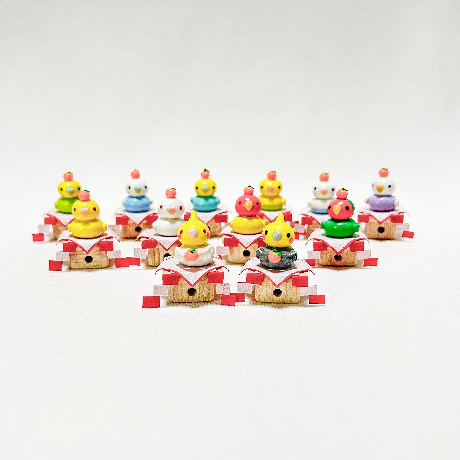 - The kagami mochi birdie and the wooden base are not glued together. Please feel free to place and arrange them as you like.