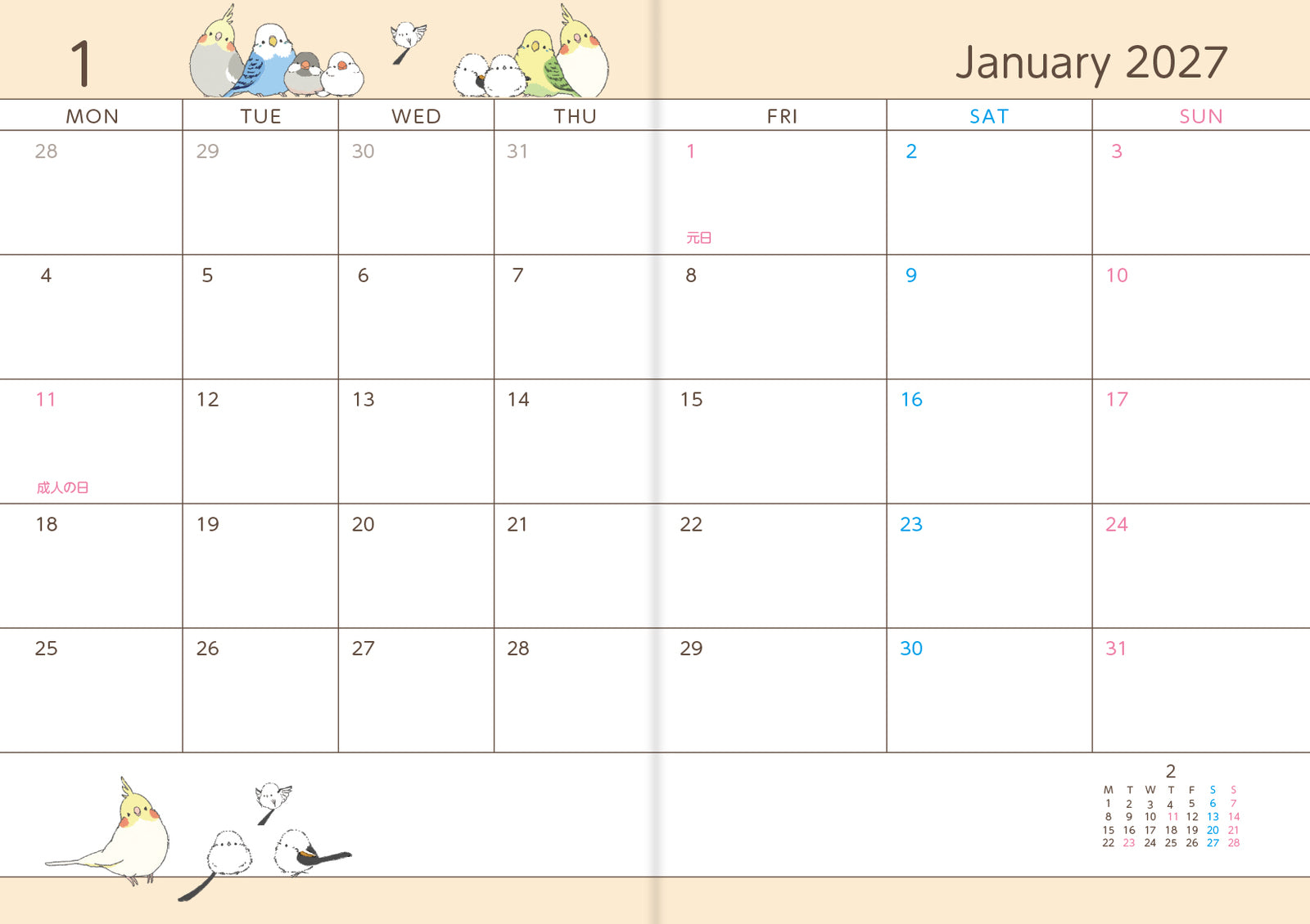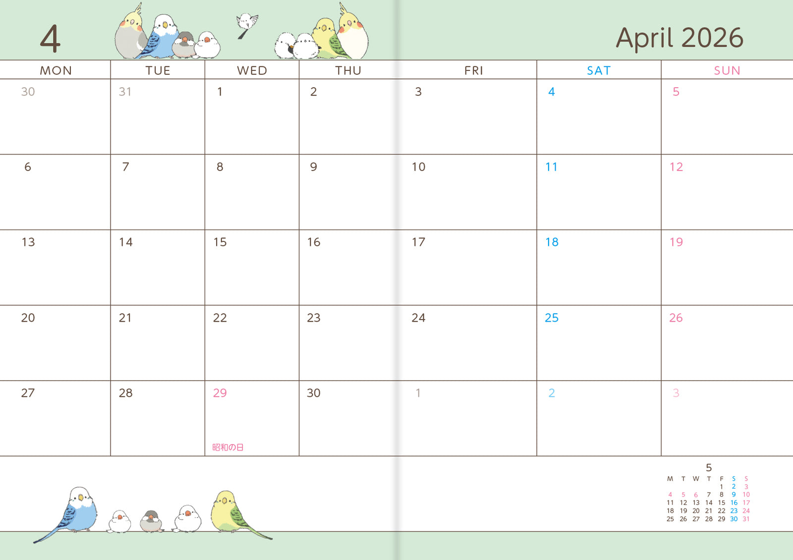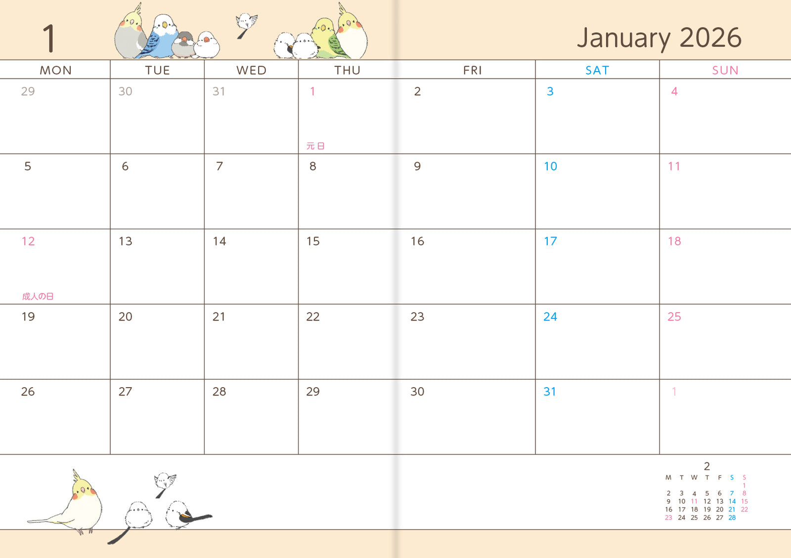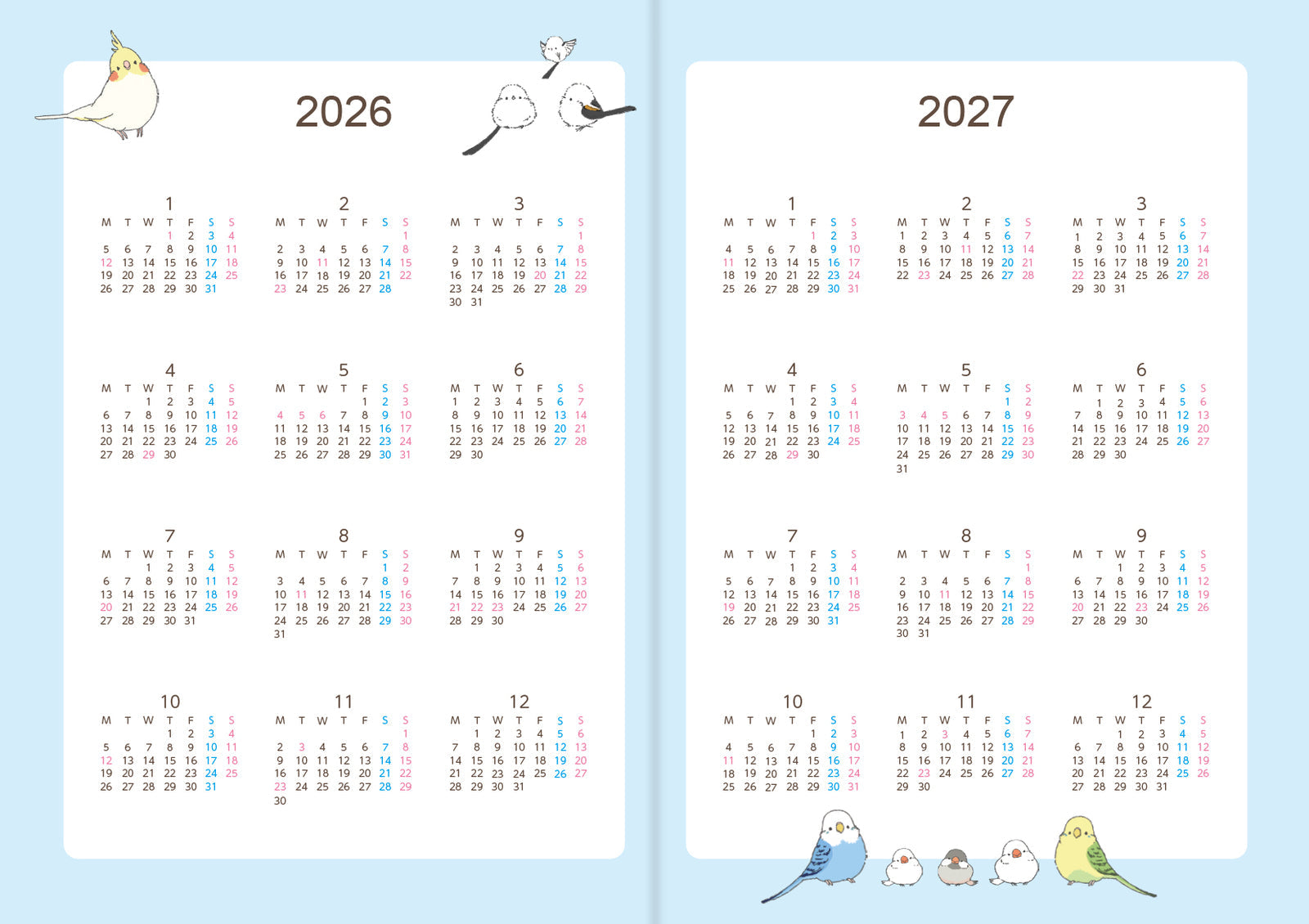 - 2026 Long-tailed Tit Budgie Java Sparrow Cockatiel Planner Diary Schedule Book
