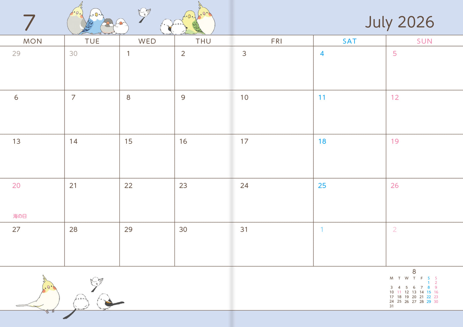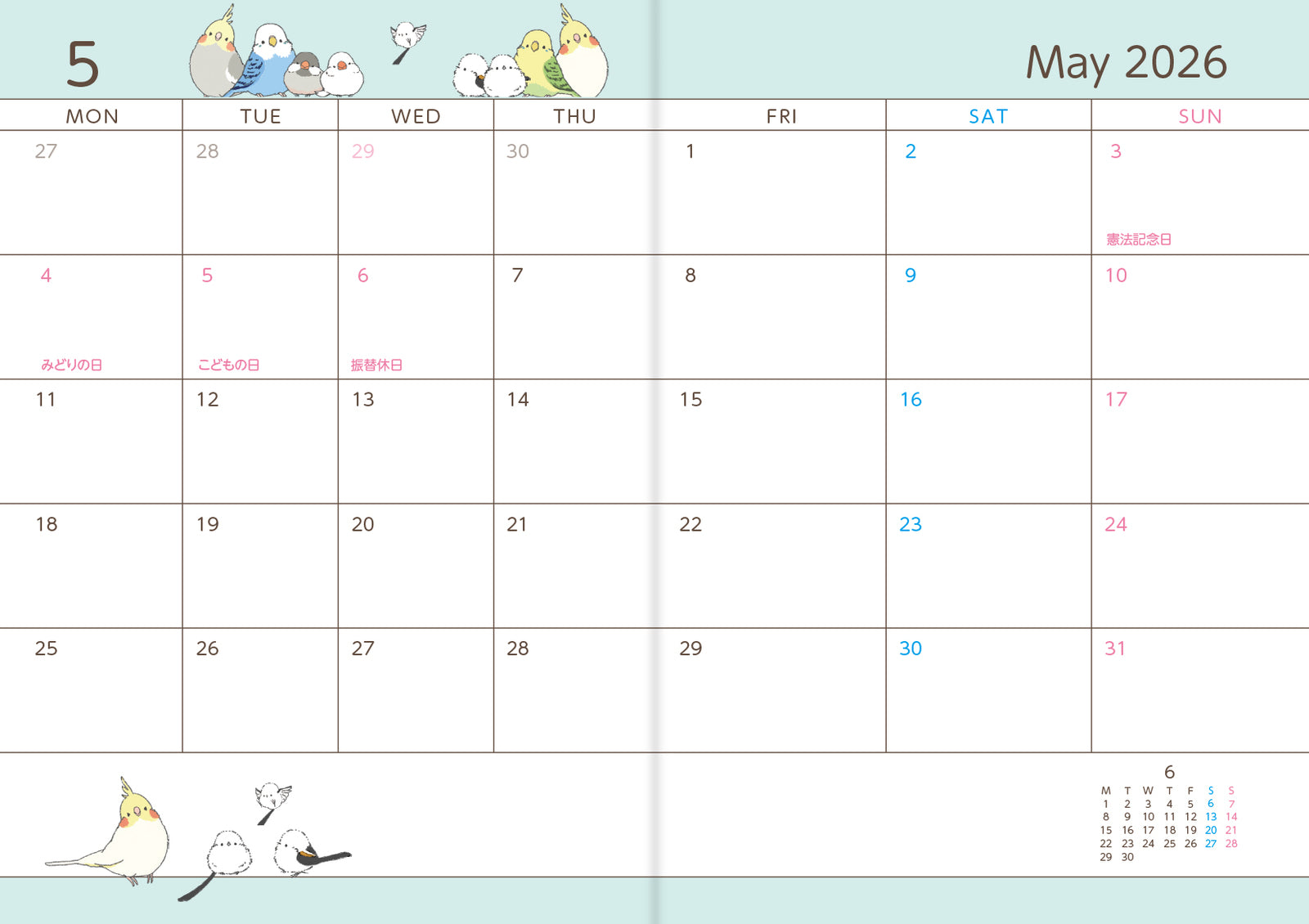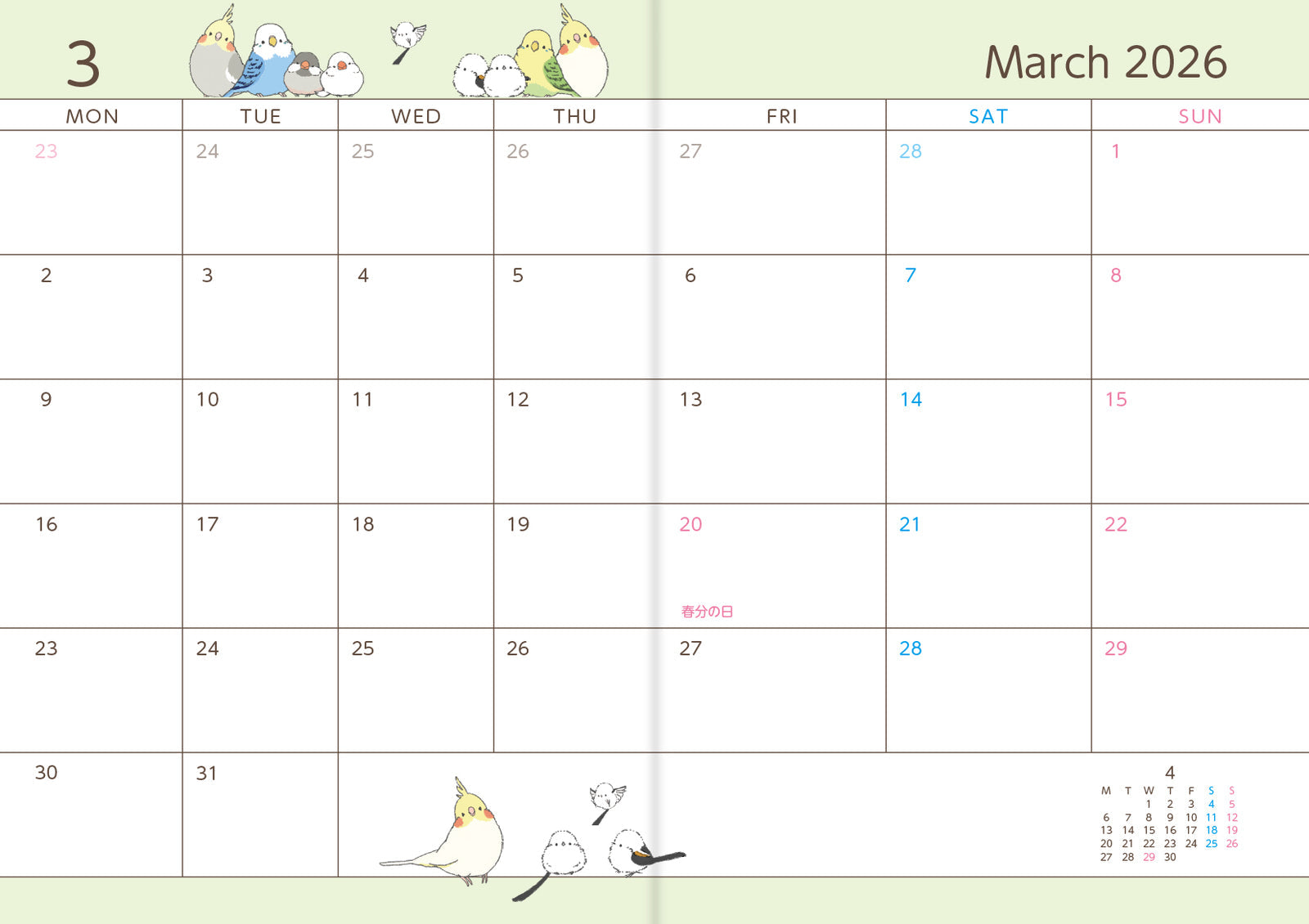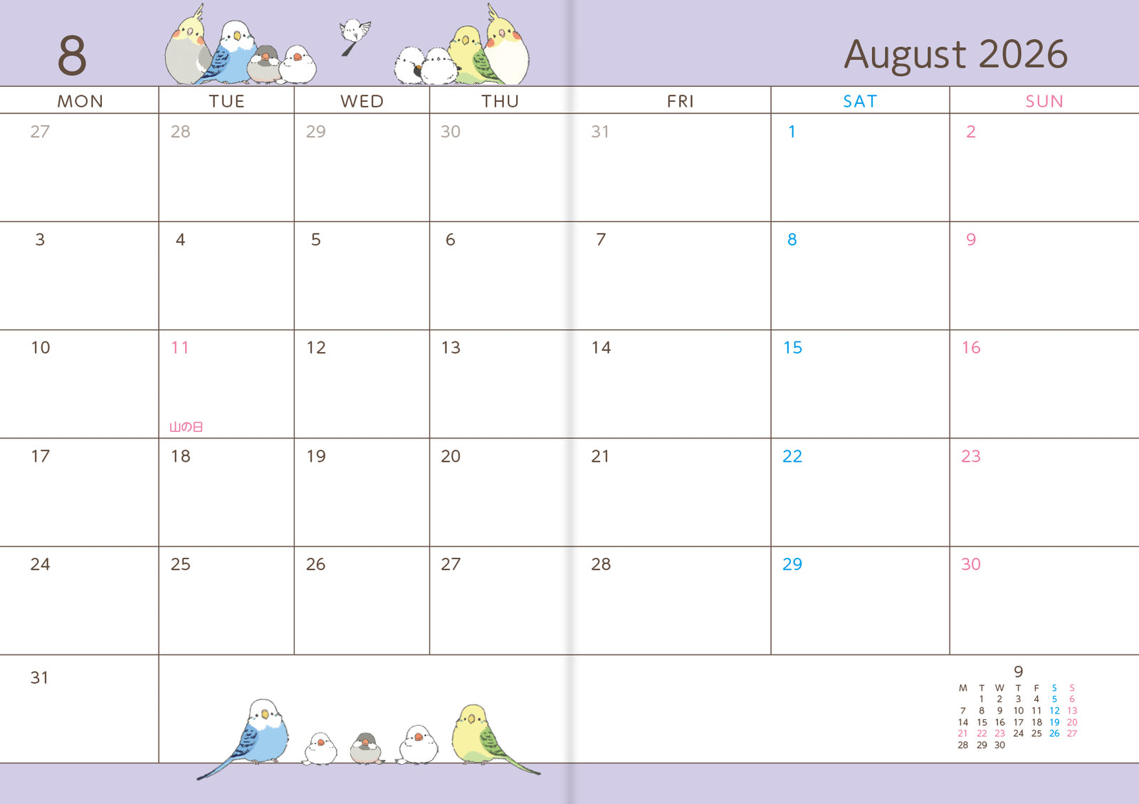 - 2026 Long-tailed Tit Budgie Java Sparrow Cockatiel Planner Diary Schedule Book