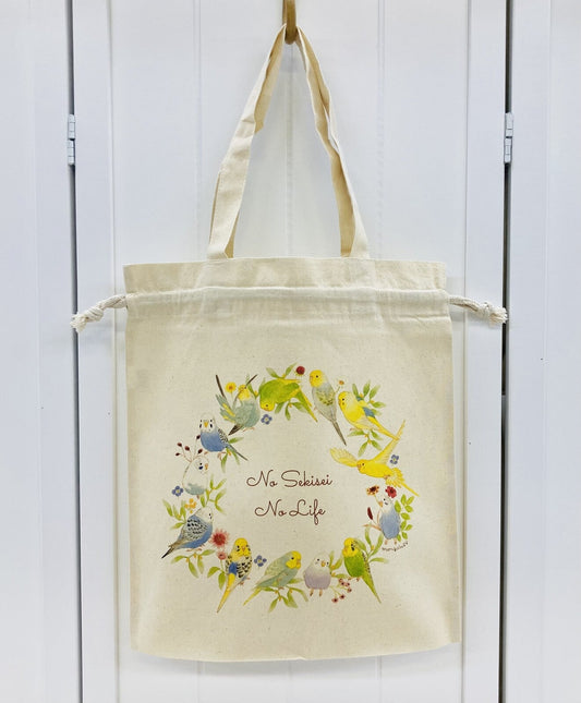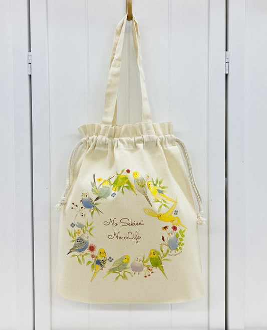 Java Sparrow Wreath Drawstring Bag Medium Size