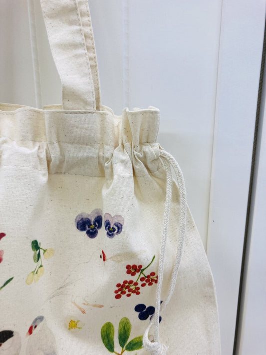Bird Wreath Lightweight Cotton Drawstring Tote Bag Eco Bag