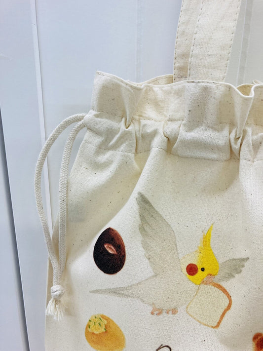 Cockatiel & Bread Lightweight Cotton Drawstring Tote Bag Eco Bag