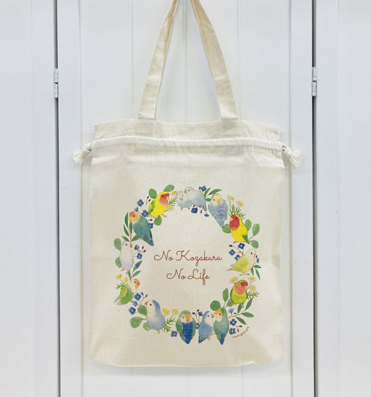 Lovebird Wreath Lightweight Cotton Drawstring Tote Bag Eco Bag