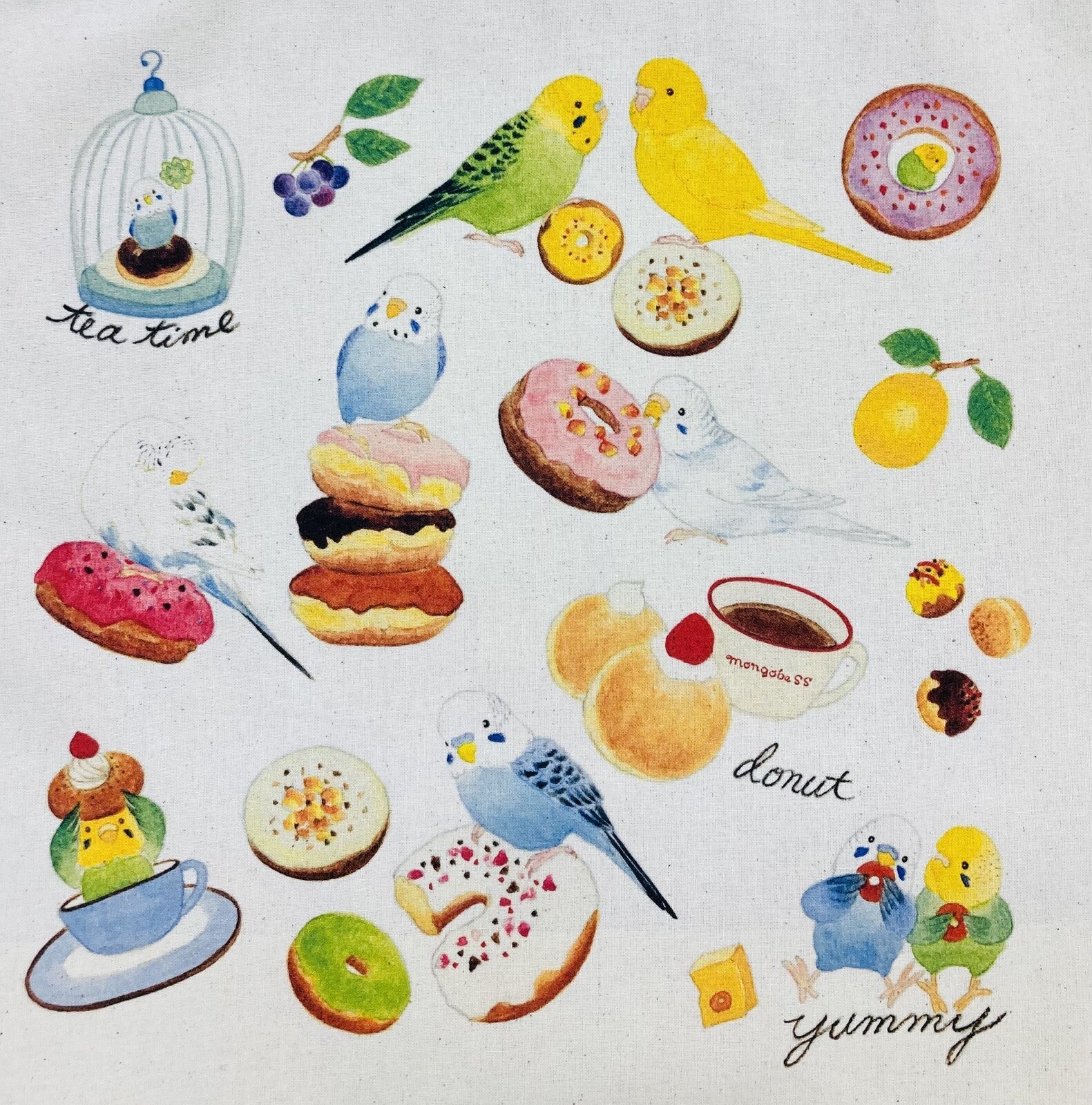 - Budgie & Donut Lightweight Cotton Drawstring Tote Bag Eco Bag