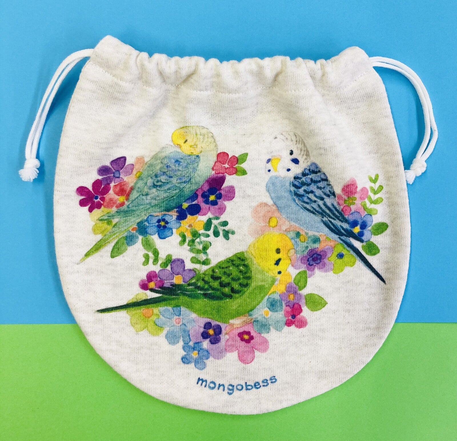 - Budgie & Flower Drawstring Bag