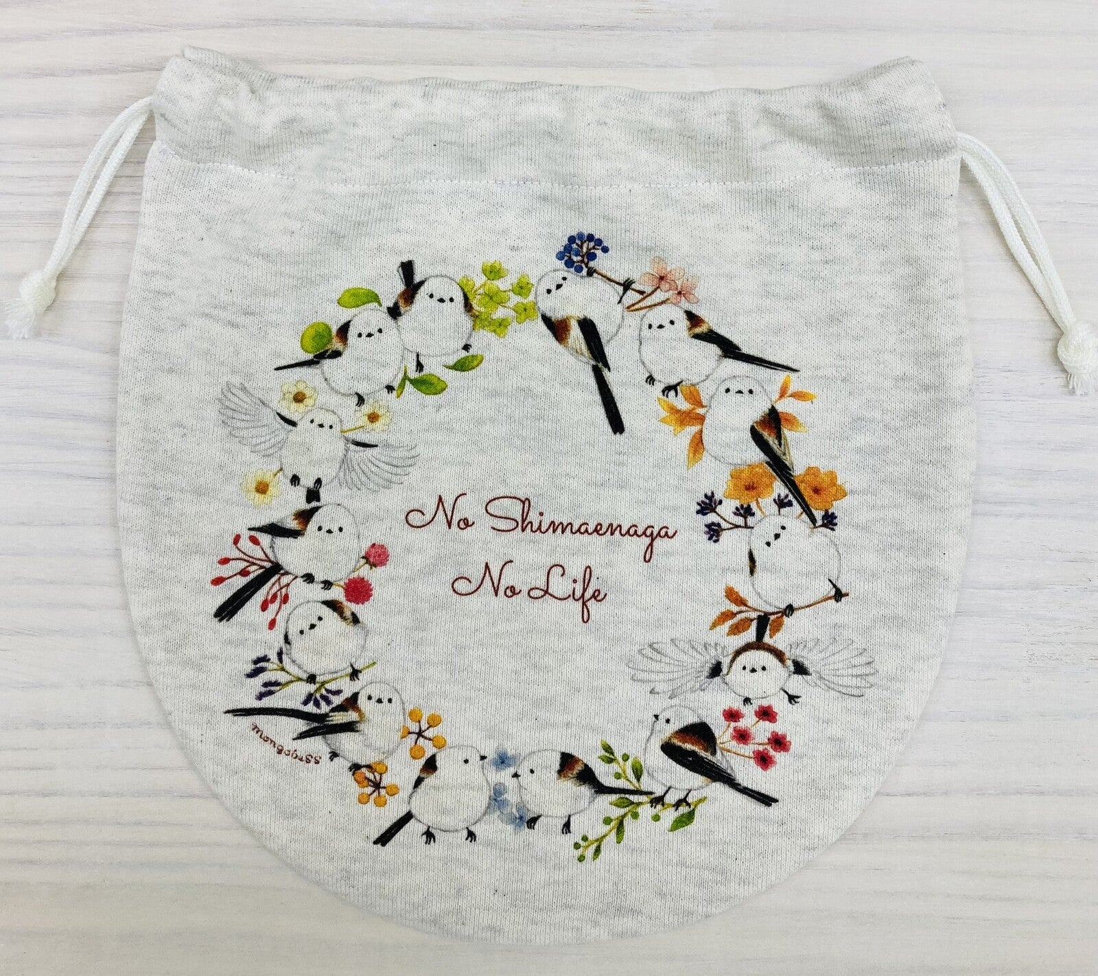 Long-tailed Tit Wreath Drawstring Bag Medium Size
