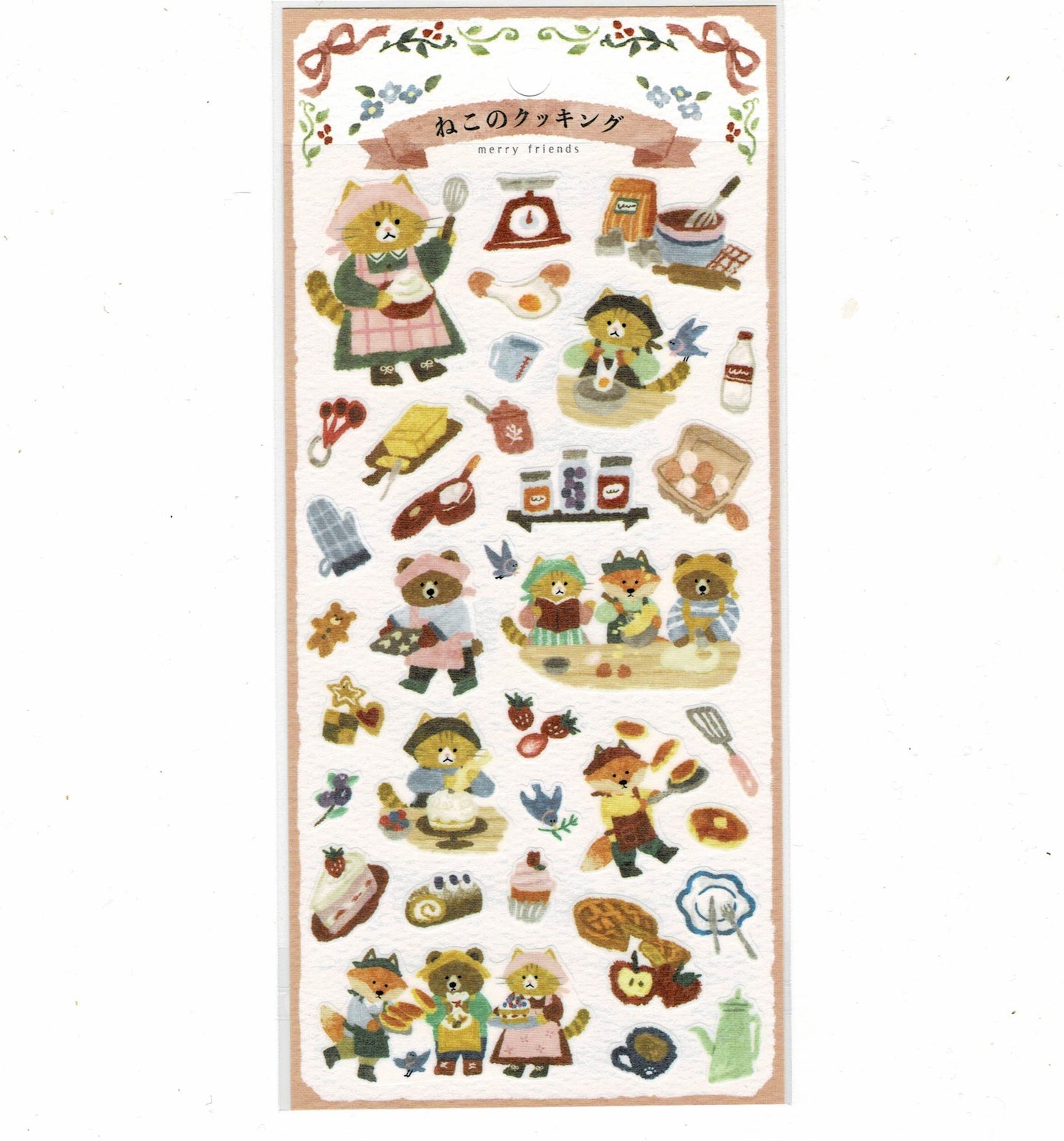 Cat Fox Bear Cooking Japanese Washi Stickers