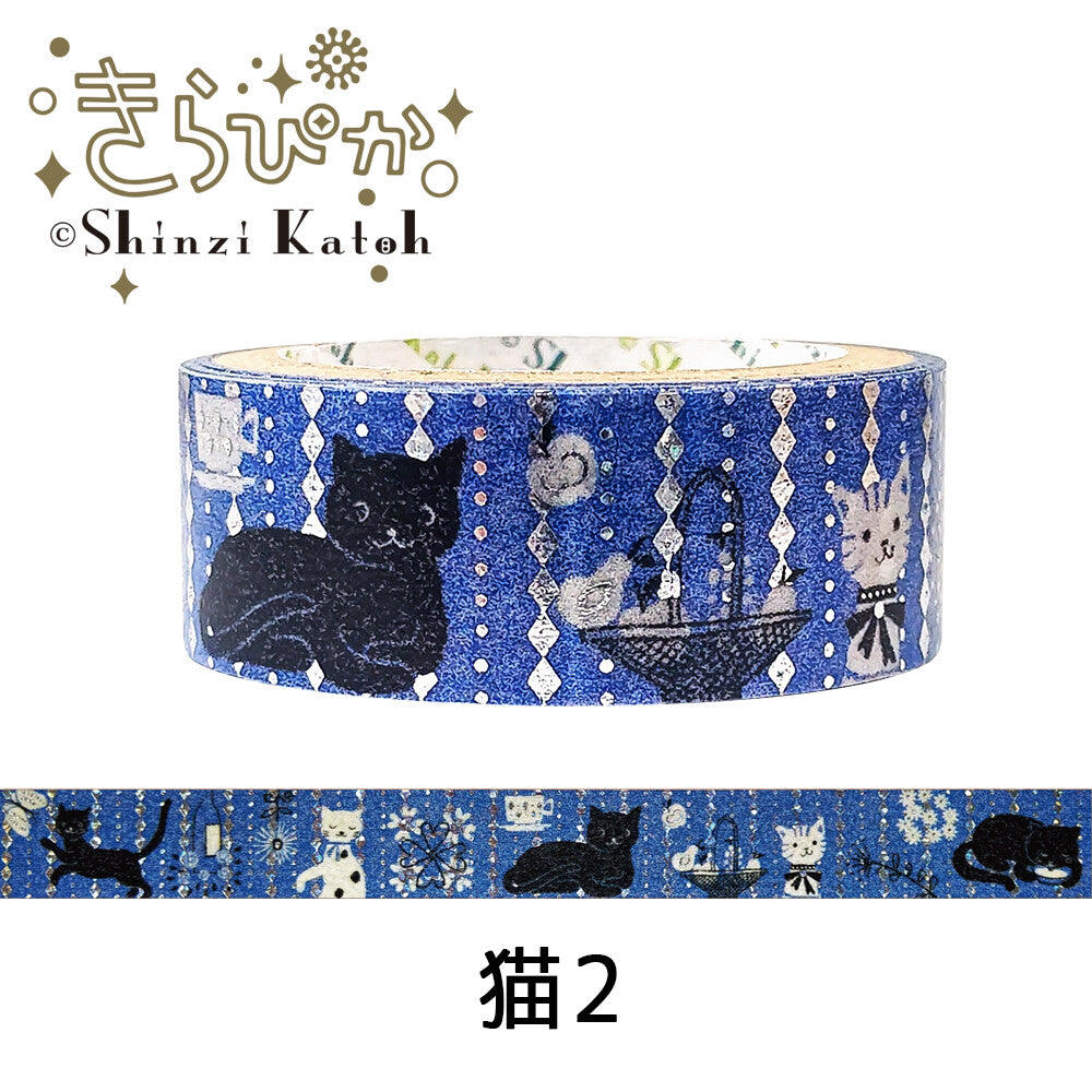 Cat Silver Glitter Japanese Washi Tape Masking Tape Shinzi Katoh Design