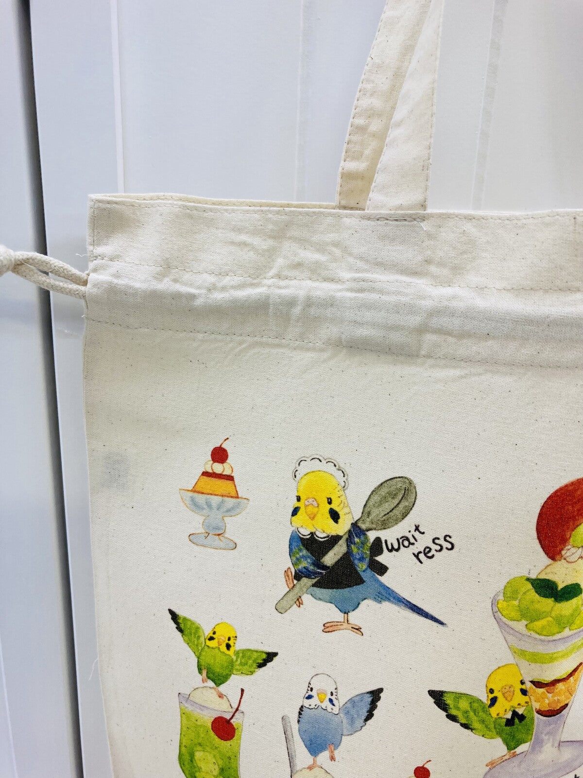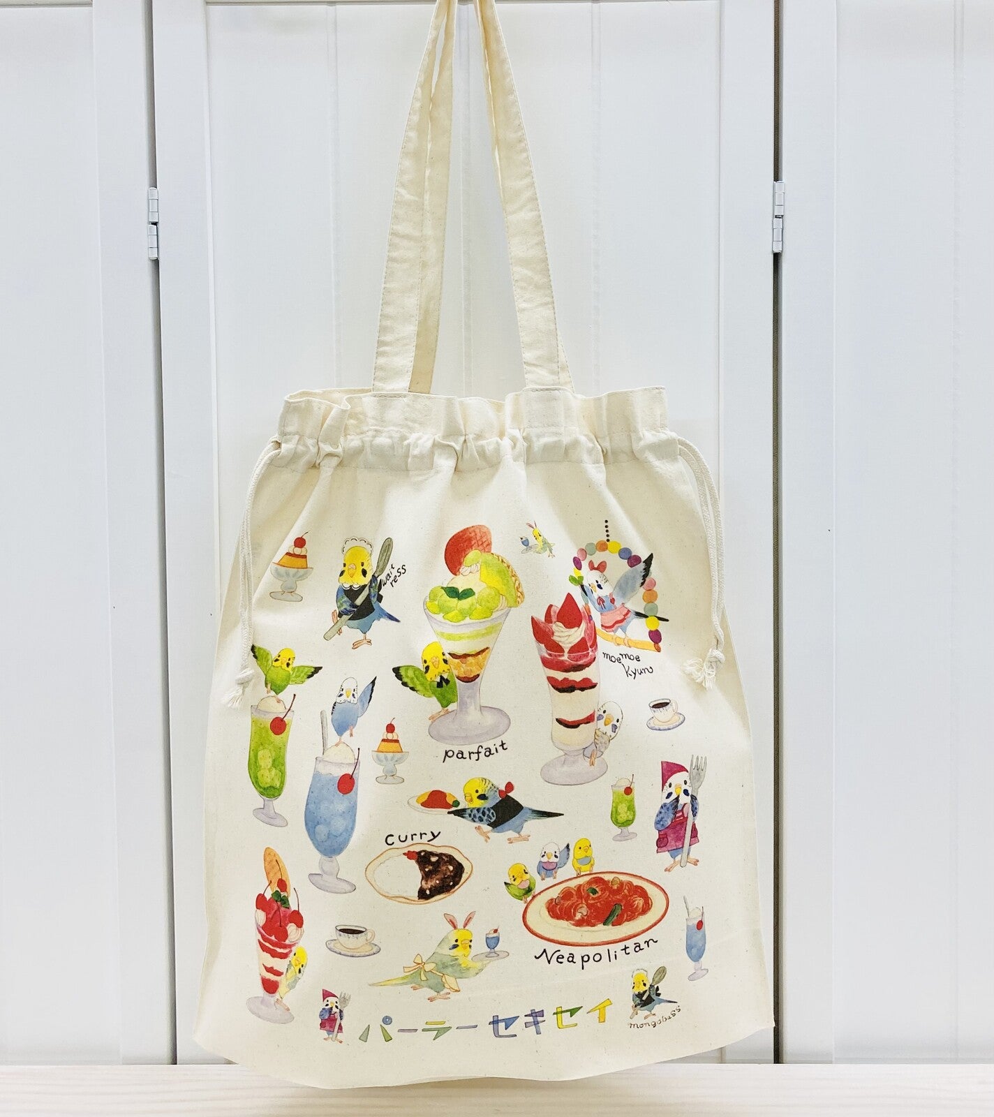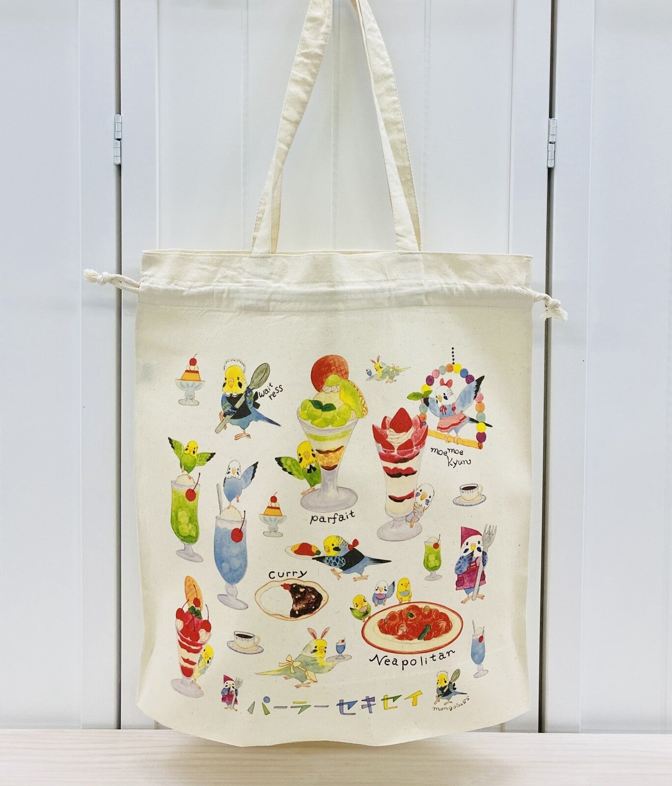 - Budgie Parlor Lightweight Cotton Drawstring Tote Bag