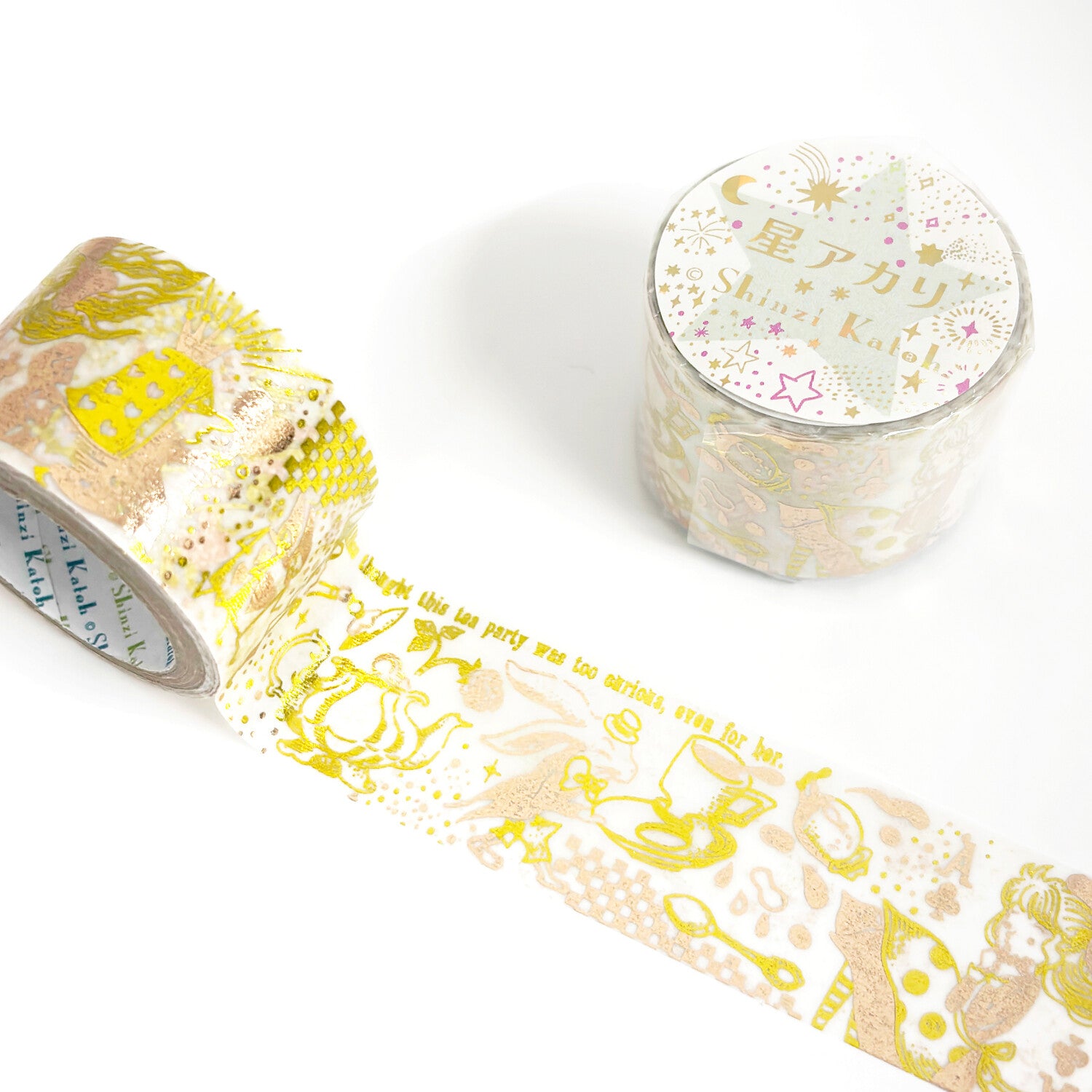 Forever Tea Party Alice in Wonderland Pure Gold & Pink Glitter Japanese Washi Tape Masking Tape