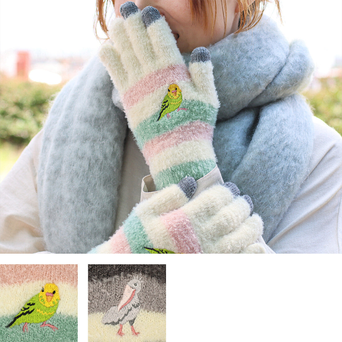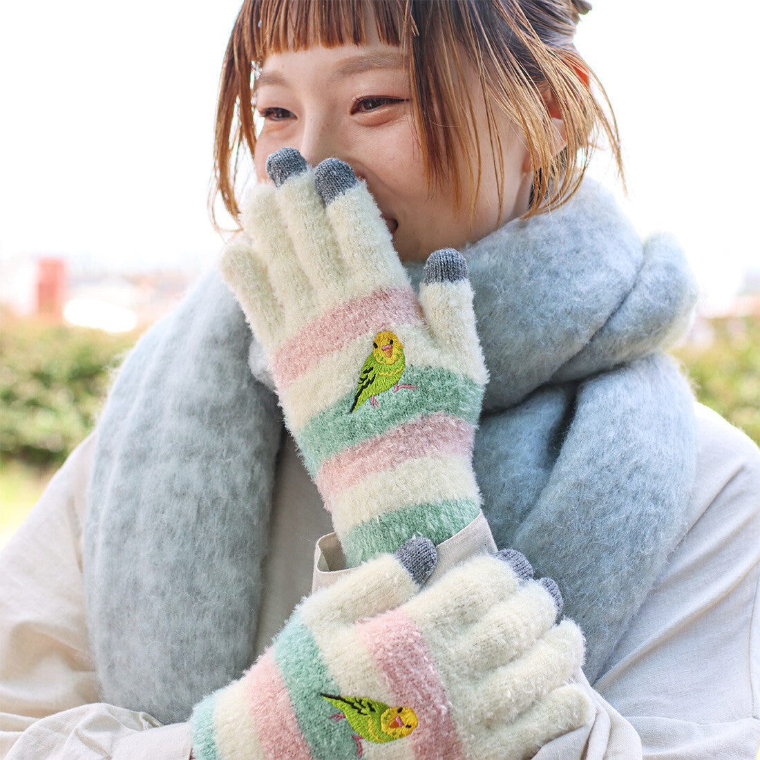 - Super Cute Embroidery Budgie Touch Screen Gloves!