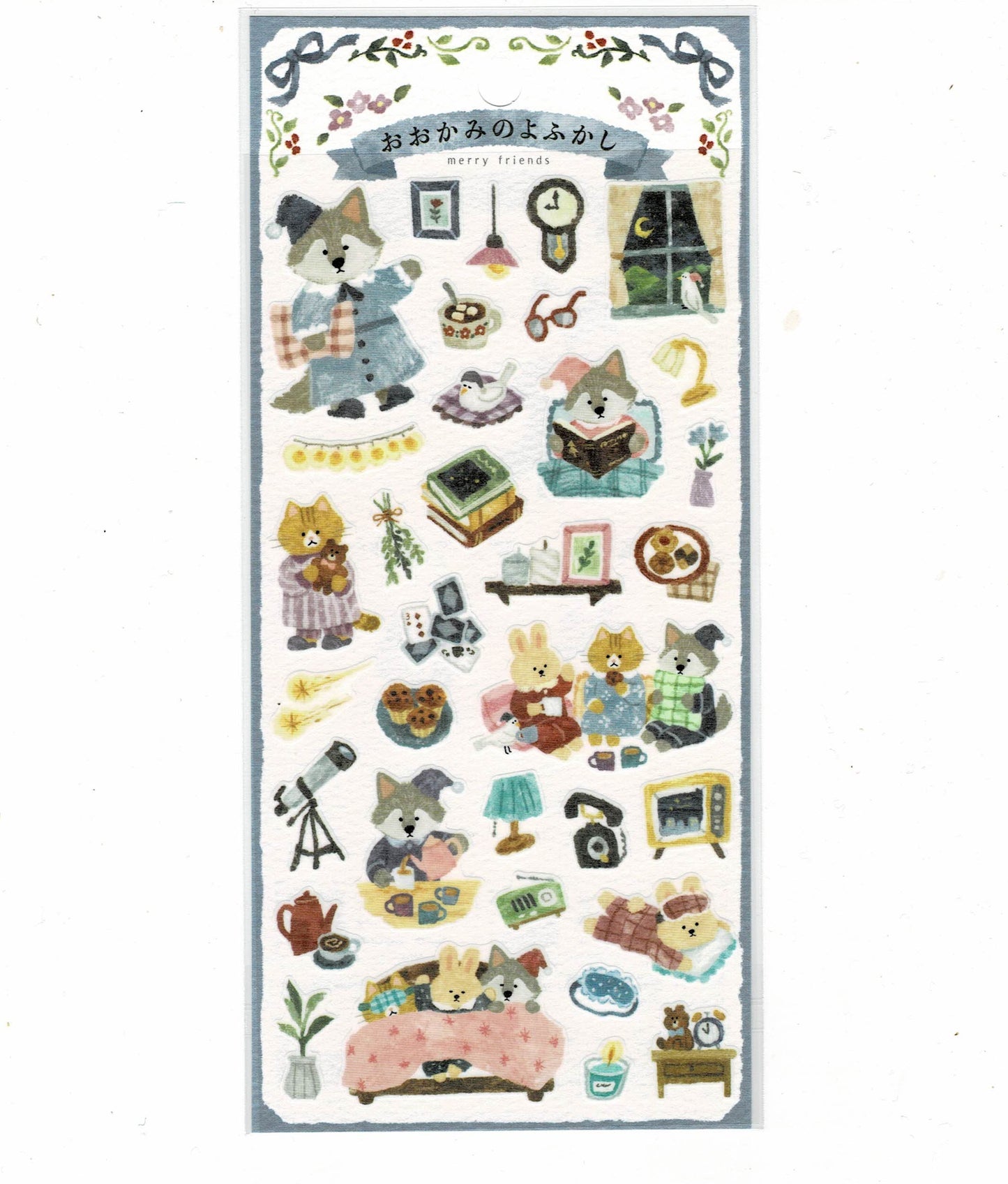 Wolf Rabbit Cat Staying Up Late Japanese Washi Stickers